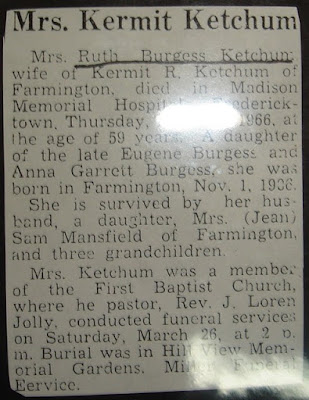 Kermit married Bernice Evans after Ruth's death. In 1974, Kermit was listed in the Farmington City Directory. He was listed as working for Rose Exterminator. Kermit died in March 1995, and he was buried next to Minnie in Hillview Memorial Gardens in Farmington.